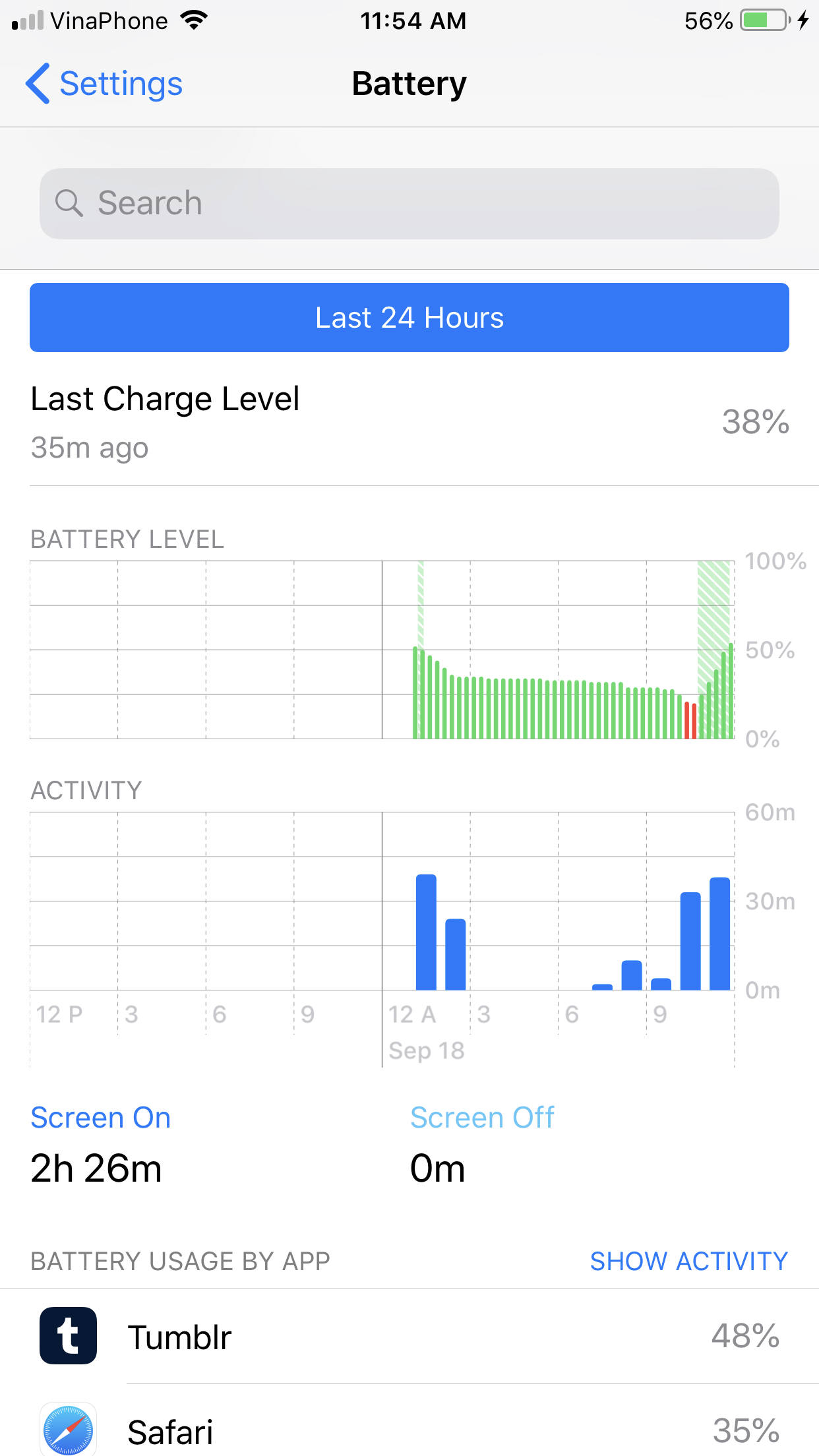 Ở phần Battery (pin) trong cài đặt, các biểu đồ về tình trạng sử dụng pin sẽ hiển thị theo 24h hoặc 10 ngày thay cho 7 ngày.
