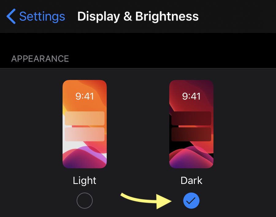 Để kích hoạt chế độ Dark Mode, bạn có thể vào Settings > Display & Brightness và chuyển sang chế độ Dark.