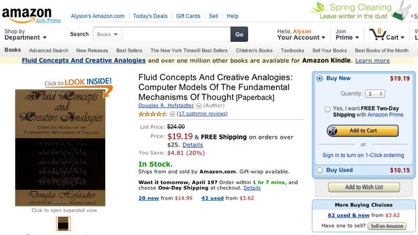 Cuốn sách đầu tiên được mua trên Amazon là Fluid Concepts and Creative Analogies: Computer Models of the Fundamental Mechanisms of Thought của Douglas Hofstadter vào năm 1995. (Ảnh: Amazon)