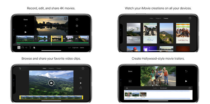 Một trong những ứng dụng biên tập và chỉnh sửa video có nhiều tính năng nhất trên di động chính là iMovie của Apple. Được phát triển độc quyền dành cho iPhone, ứng dụng này cho phép chỉnh sửa nhanh nhưng không kém phần mạnh mẽ video tuỳ theo ý muốn của bạn. Cắt, phân chia, ghép hay áp dụng các bộ lọc khác nhau là một số những tác vụ biên tập cơ bản iMovie có thể đáp ứng được chỉ trong tích tắc.