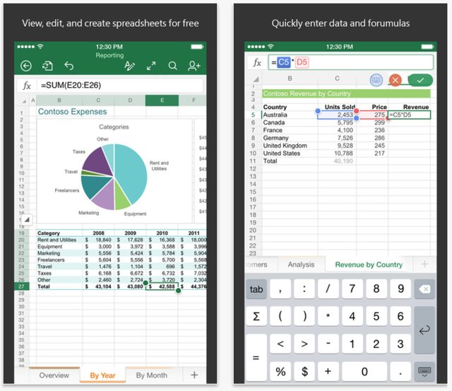 Numbers của Apple tỏ ra khá hữu ích trong việc giúp người dùng tạo biểu đồ nhưng nói về ứng dụng bảng tính thì Excel vẫn là một “tượng đài” chưa có người vượt qua. Ứng dụng iPhone của Excel thậm chí còn có một bàn phím công thức đặc biệt giúp người dùng tương tác và tính toán nhanh hơn so với bàn phím chuẩn.
