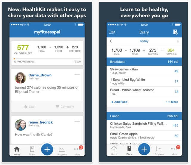 Ứng dụng Health của Apple gần như là một ứng dụng tổng hợp dữ liệu từ các ứng dụng khác và Apple “cho rằng” bạn sử dụng rất nheieuf các thiết bị theo dõi hoạt động. MyFitnessPal trong khi đó mang đến cho người dùng nhiều cách theo dõi hoạt động của mình hơn. Vì dụ, bạn có thể theo dõi hoạt động ăn uống của mình một cách dễ dàng sử dụng kho dữ liệu thức ăn phong phú qua hình thức quét mã vạch. MyFitness cũng hỗ trợ hơn 60 thiết bị theo dõi hoạt động và ứng dụng khác để mang đến cho người dùng một cái nhìn toàn cảnh về sức khoẻ của mình.