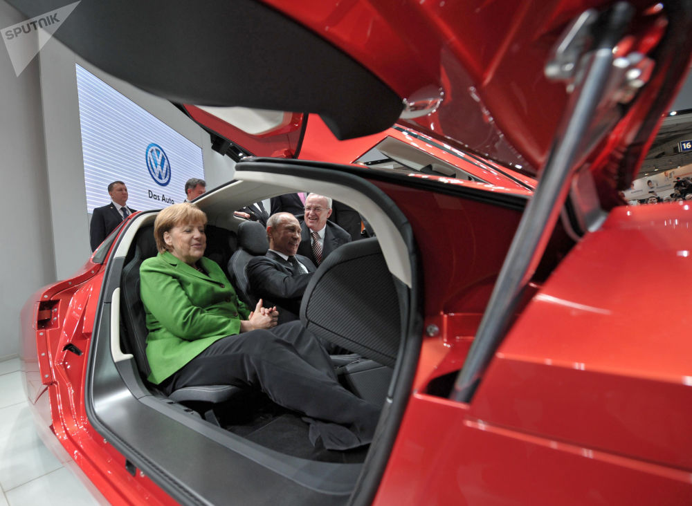 Tổng thống Nga Vladimir Putin và Thủ tướng Đức Angela Merkel tại hội chợ thương mại lớn nhất thế giới Hannover Messe (Ngày 8 tháng 4 năm 2013).