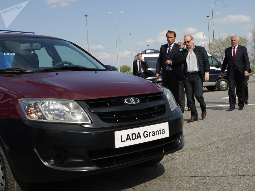 Tổng thống Nga Vladimir Putin kiểm tra mẫu ô tô thử nghiệm được sản xuất bởi hãng sản xuất ô tô Nga AvtoVAZ (Ngày 30 tháng 3 năm 2009).
