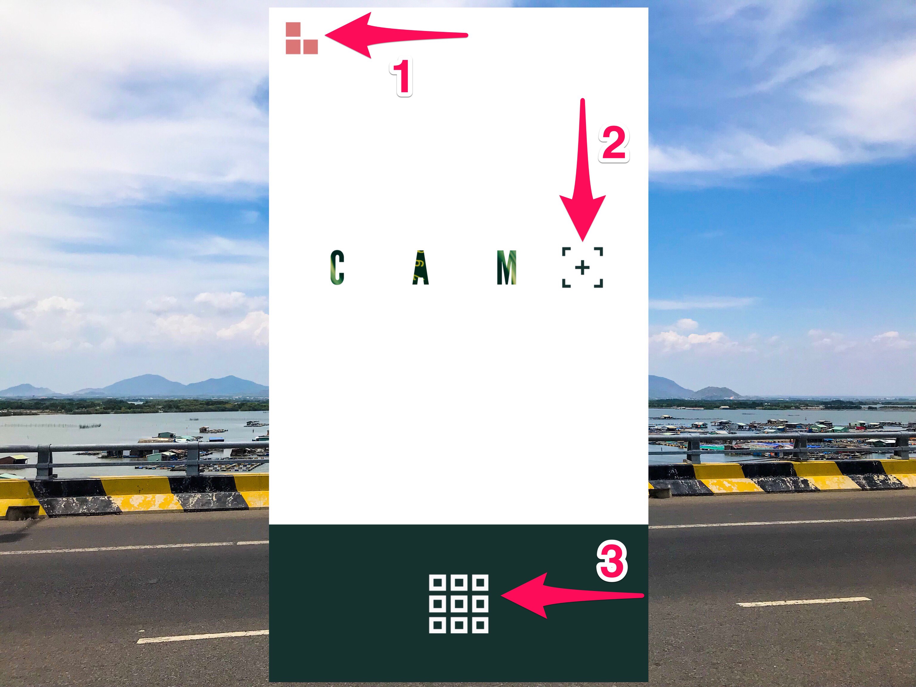Sau khi hoàn tất việc hiển thị những thao tác cơ bản, ứng dụng sẽ hiện lên giao diện chính với 3 lựa chọn gồm: 1. Mở rộng, 2. Chụp ảnh ngay trong ứng dụng, 3. Chỉnh sửa ảnh có sẵn từ thư viện.