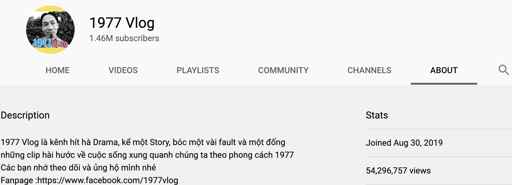 “Hiện tại kênh YouTube 1977 Vlog của bọn mình đã biến mất tiêu cả 5 video. Bọn mình đang tìm hiểu nguyên nhân để khắc phục. Còn đội ngũ 1977 vẫn khỏe re, vừa ăn bánh mì chấm sữa để nghĩ kịch bản mới nha”, 1977 Vlog cho biết.