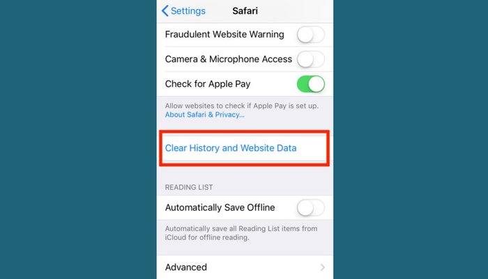 3. Lúc này bạn sẽ thấy tuỳ chọn “Clear History and Website Data.”