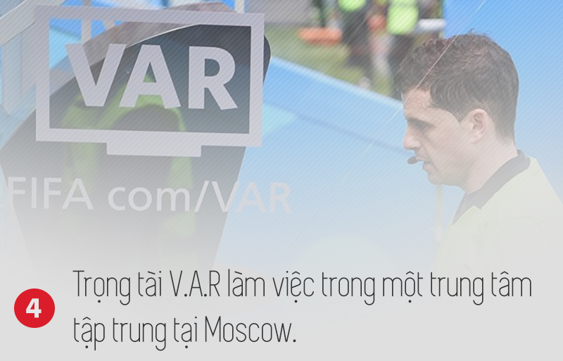 Nhóm V.A.R sẽ hỗ trợ trọng tài trên sân từ một phòng vận hành video tập trung gọi là VOR được đặt ở Trung tâm Truyền thông Quốc tế IBC ở Moscow. Tất cả các luồng thông tin camera có liên quan sẽ được chuyển từ 12 sân vận động World Cup tới V.AR. thông qua hệ thống cáp quang. Trọng tài trên sân và VAR sẽ liên lạc với nhau bằng một thiết bị audio kết nối bằng cáp quang.