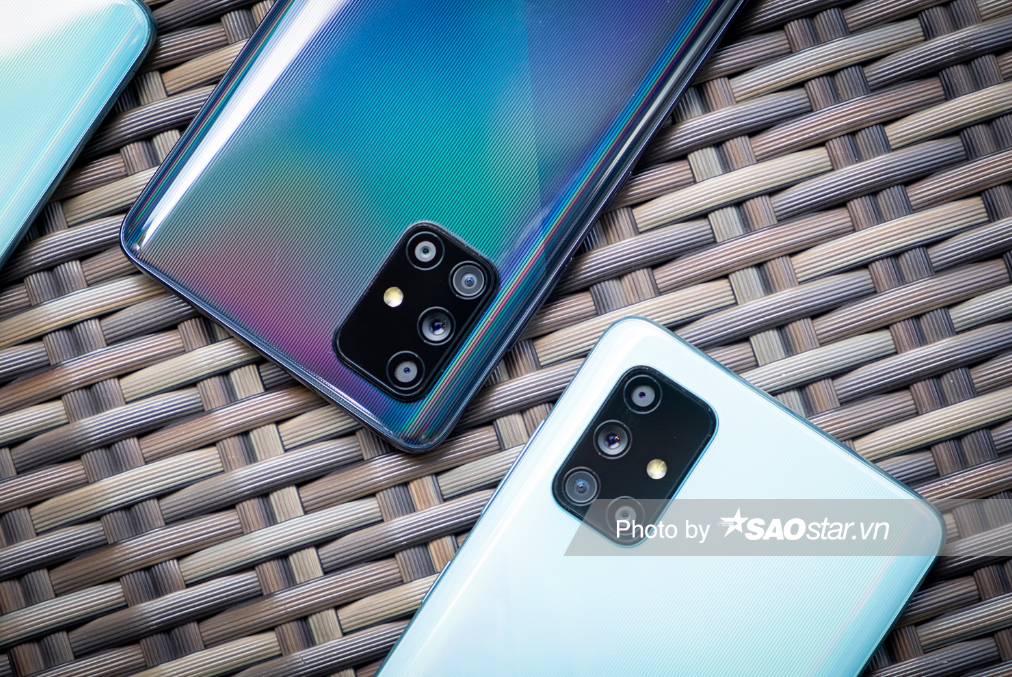 Samsung Galaxy A71 có phiên bản màu xanh dương cùng hiệu ứng vân sọc và mặt cắt kim cương khá hấp dẫn. Với giá bán 10,49 triệu đồng, chiếc điện thoại này được đánh giá cao ở thiết kế gọn gàng, chắc chắn dù chỉ có thân máy cấu thành từ nhựa và cụm bốn camera sau.