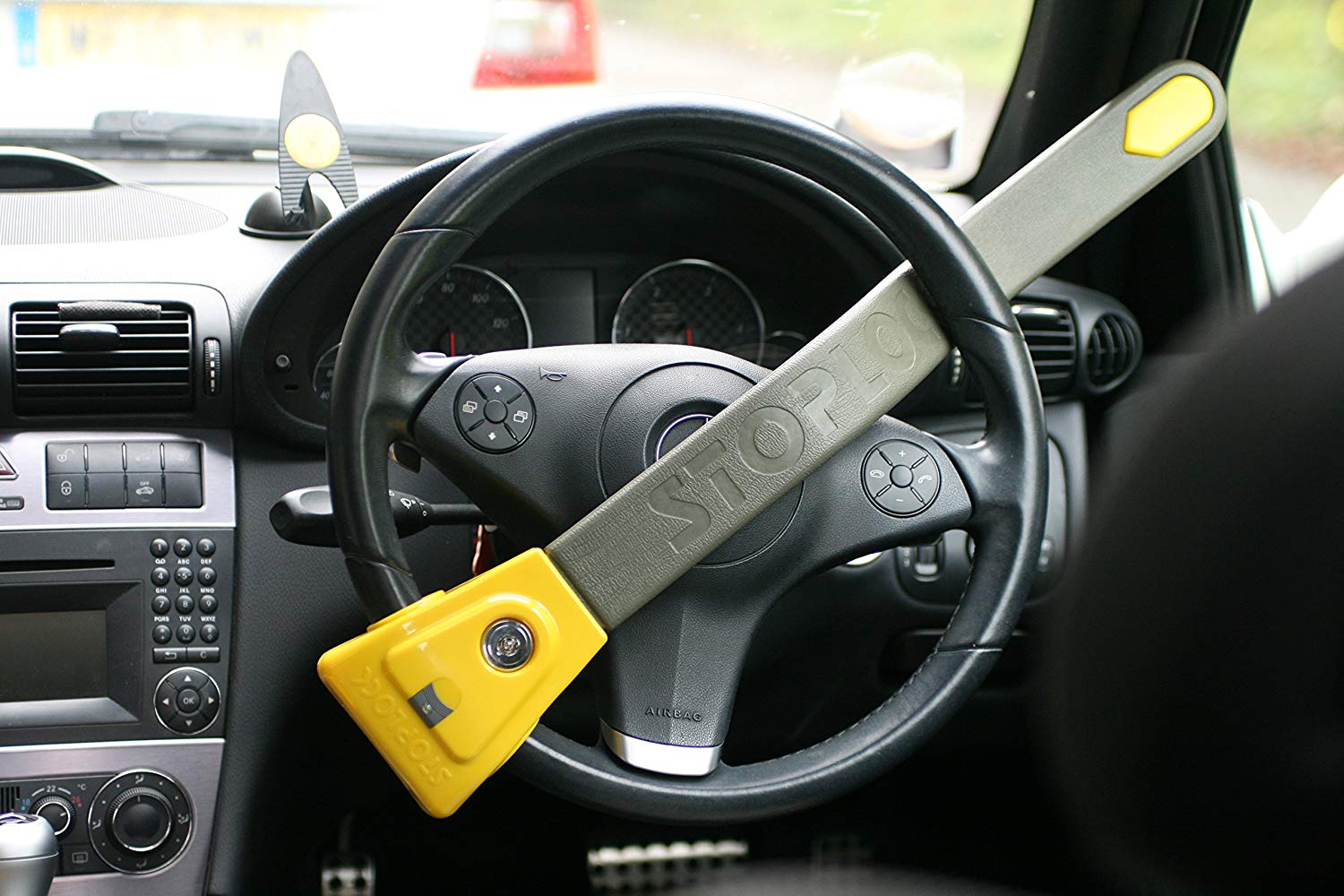 Khóa vô lăng là thiết bị khoá bánh lái, ngăn không cho vô lăng xoay chuyển. Nếu gặp phải khoá này, bọn trộm sẽ mất nhiều thời gian để thực hiện mở khoá và rất dễ bị phát hiện. Trên thị trường hiện nay có hai loại khoá vô lăng thường thấy là: một loại khóa gắn ở vị trí “3h và 9h” của vô lăng hoặc một loại có thiết kế chữ “T” gắn ở vị trí “12h” của vô lăng.