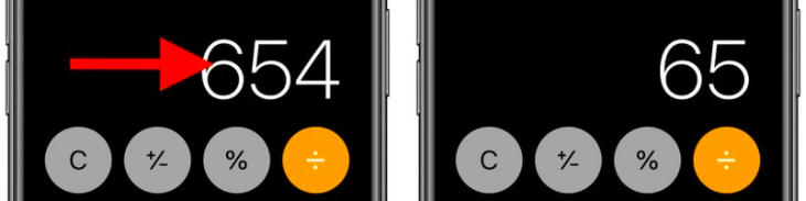 Người dùng thường nghĩ rằng khi gõ sai số trong ứng dụng Calculator, họ sẽ phải gõ lại số từ đầu. Rất may mắn là điều này không đúng bởi tất cả những gì bạn cần làm là lướt tay sang trái hoặc sang phải để xoá số cuối cùng bạn vừa nhập thêm vào màn hình. Lặp lại bước này nếu bạn muốn xoá nhiều hơn một số.