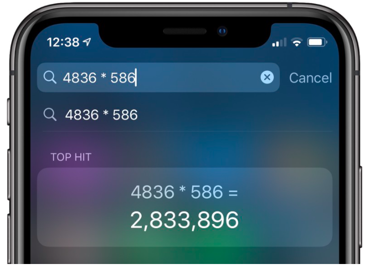 Có thể bạn sẽ bất ngờ khi biết khả năng tính toán được Apple tích hợp trực tiếp vào thanh tìm kiếm Spotlight trên iPhone. Vì thế, bạn chỉ cần lướt tay từ trên xuống để gọi thanh tìm kiếm Spotlight và thực hiện các phép tính toán cơ bản ngay tại đây mà không cần mở ứng dụng Calculator.