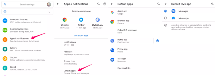 Để lựa chọn ứng dụng mặc định, người dùng có thể vào Settings > Apps & Notifications > Default Apps. Ảnh: CNET