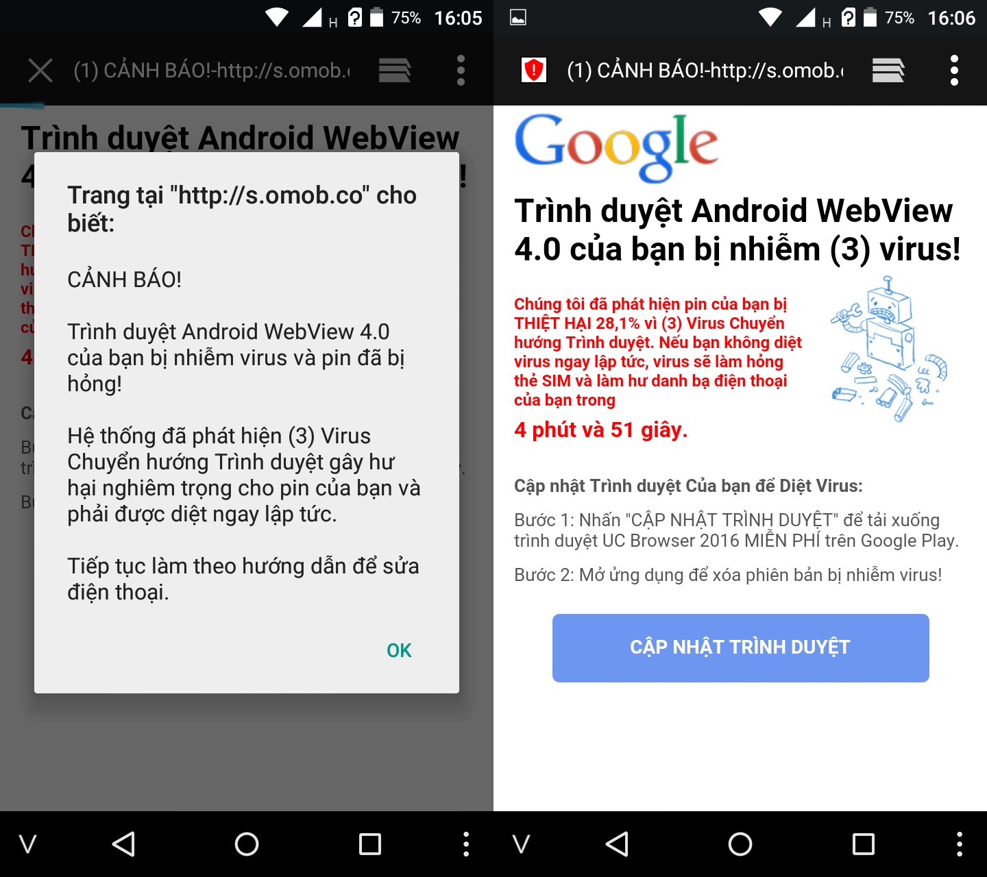 Đa số người dùng khi thấy những mẫu tin nhắn “trúng thưởng” hay thông báo về việc “máy tính, điện thoại nhiễm bị virus cần cài đặt phần mềm diệt virus” thì đa phần người dùng sẽ nhấn vào mà không suy nghĩ. Tuy nhiên, những mẫu tin dạng này thường gây tò mò cho người dùng để cài đặt các phần mềm độc hại, virus vào máy tính nạn nhân.
