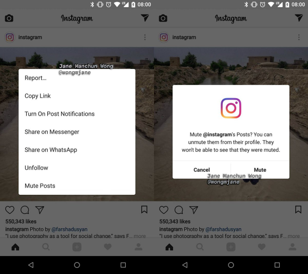 Nếu không thích nhìn thấy bài đăng của một người nào đó bạn đang theo dõi nữa nhưng việc ngừng theo dõi lại là quá… bất lịch sự, tính năng “Mute” mới mà Instagram chuẩn bị tung ra chắc chắn sẽ là cứu cánh của bạn. Khi kích hoạt tính năng này trên một người dùng, bạn sẽ vẫn được hiển thị trong danh sách người theo dõi của họ nhưng sẽ chẳng còn thấy bài đăng nào của họ trên dòng tin tức nữa.