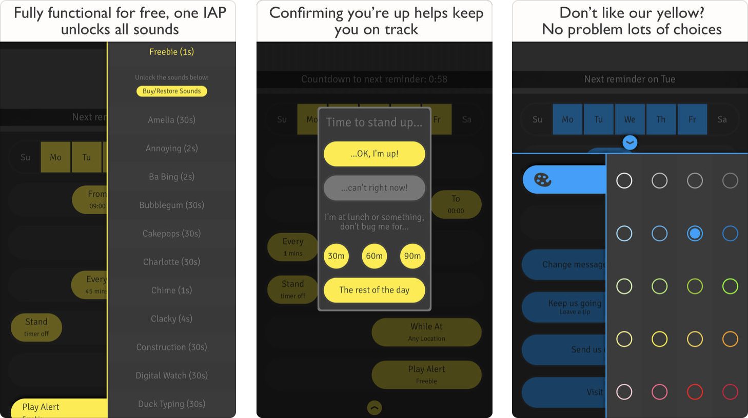 Stand Up! sẽ đưa bạn lời nhắc nhở nghỉ ngơi sau khoảng thời gian nhất định. Tuy nhiên quyết định rời khỏi bàn làm việc còn tùy thuộc vào việc bạn có muốn hay không? Hãy dành thời gian đi bộ thư giãn, uống một tách cafe, tập yoga, đi bộ lên, xuống cầu thang.