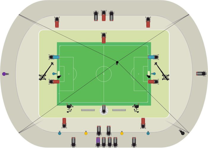Hệ thống camera dày đặc được bố trí để mang đến cho người xem những hình ảnh bắt kịp nhịp độ trận đấu nhất.
