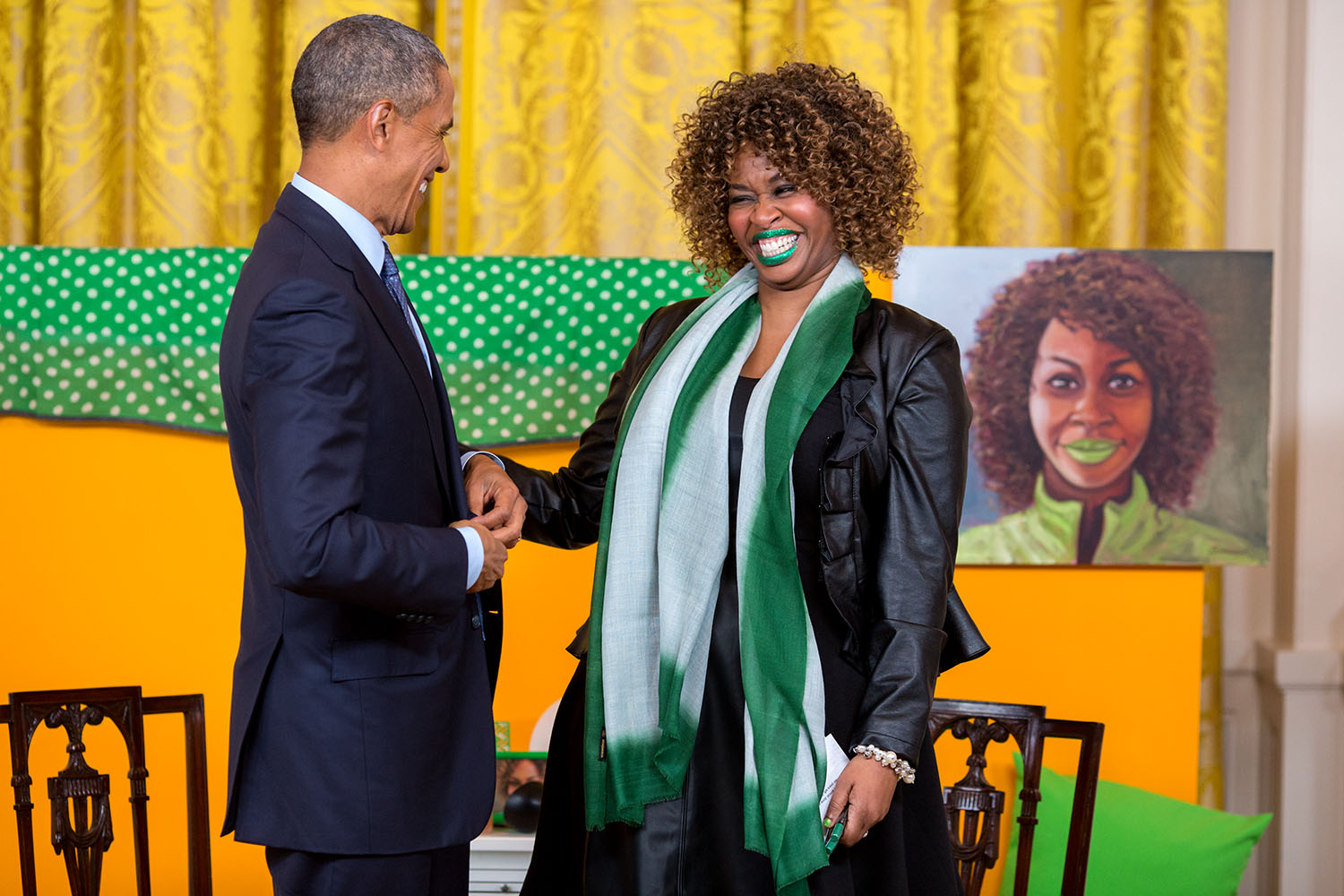 GloZell Green trong buổi phỏng vấn cựu Tổng thống Mỹ Barack Obama vào hôm 22/1/2015. (Ảnh: Chuck Kennedy)