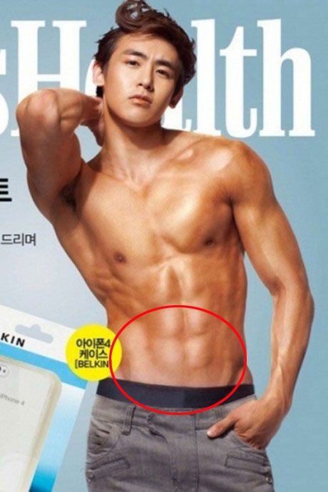 Nichkhun (2MP): Bạn đã nhìn thấy điều gì bất hưởng ở đây chưa? Có lẽ trong khi quá tập trung Photoshop bụng 6 múi cho Nichkhun, người thực hiện hình ảnh này đã quên không “gắn” thêm phần rốn cho anh.