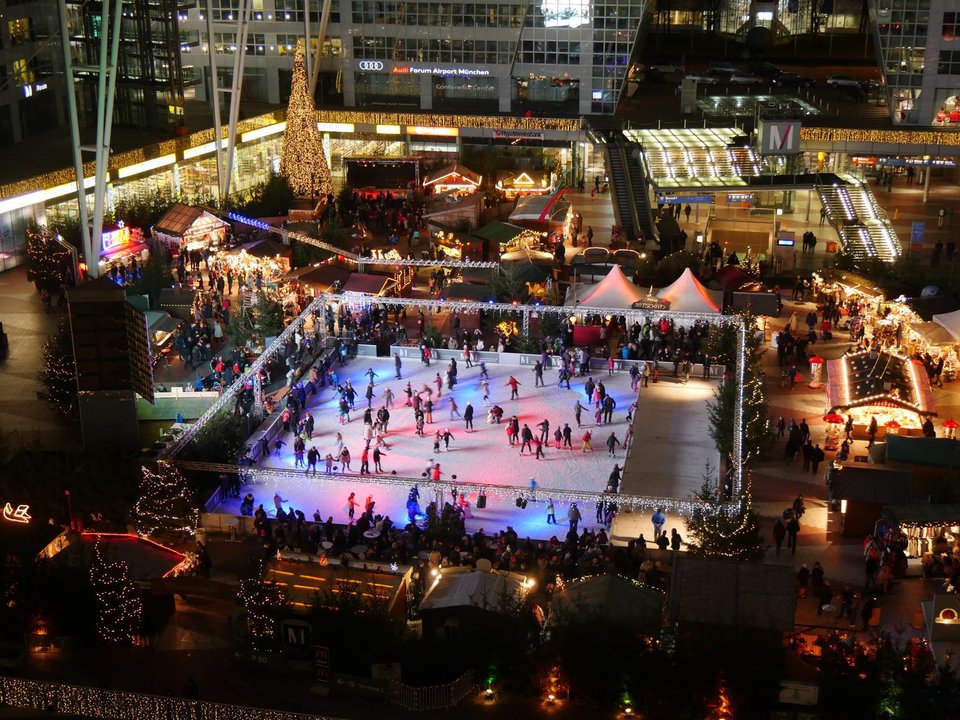 Sân bay Munich tổ chức hội chợ Mùa đông và Giáng sinh thường niên với một sân băng hoàn chỉnh.