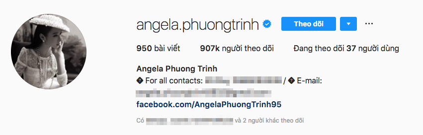 Tài khoản Instagram của Angela Phương Trinh có dấu xanh xác nhận.