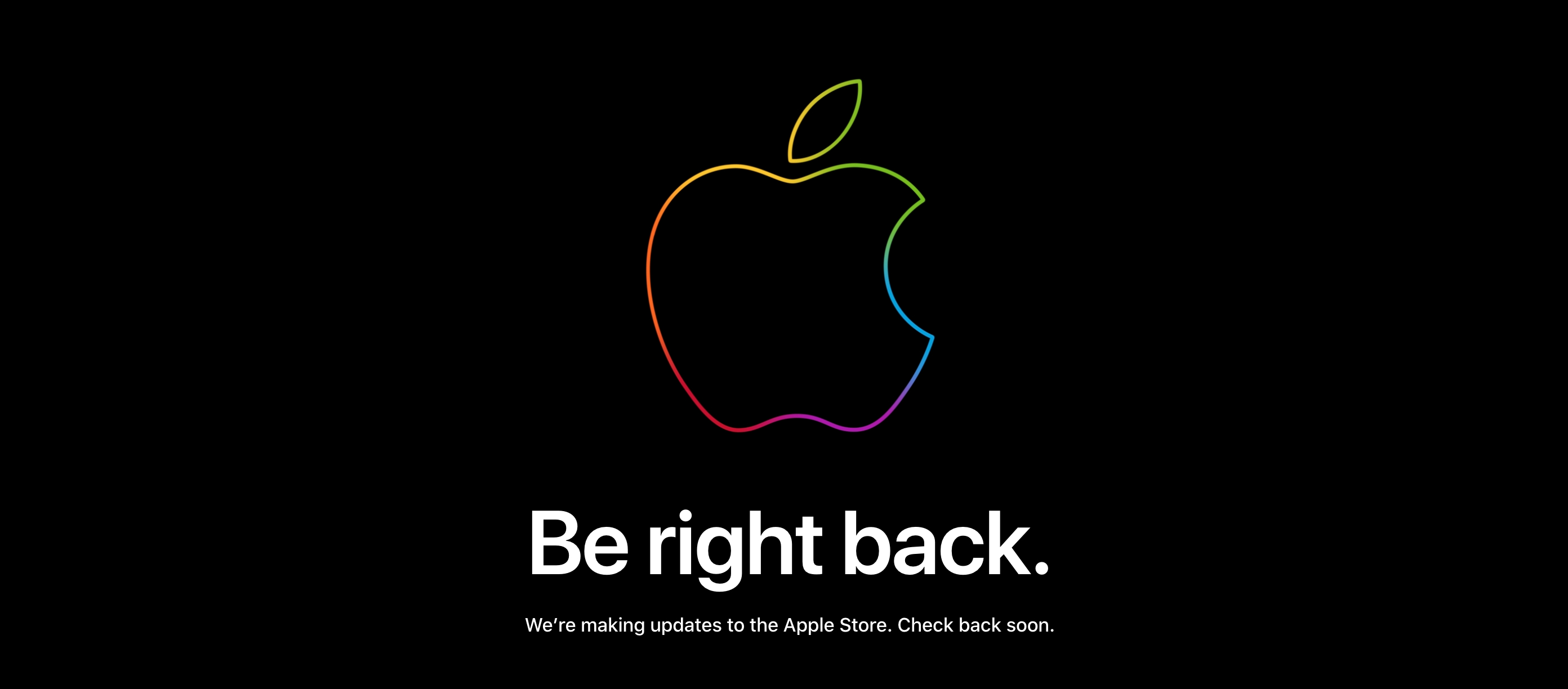 Cụ thể, trang mua sắm online của Apple có tên miền Apple.com vừa bất ngờ đóng cửa, kèm với đó là logo quả táo sặc sỡ 7 màu cùng dòng chữ “Be right back. We’re making updates to the Apple Store. Check back soon” (tạm dịch: Chúng tôi sẽ sớm trở lại. Một vài thứ đang cập nhật trên Apple Store. Hãy quay lại sau nhé!) quen thuộc được hiển thị trên trang mua sắm chính thông của “Táo Khuyết”.