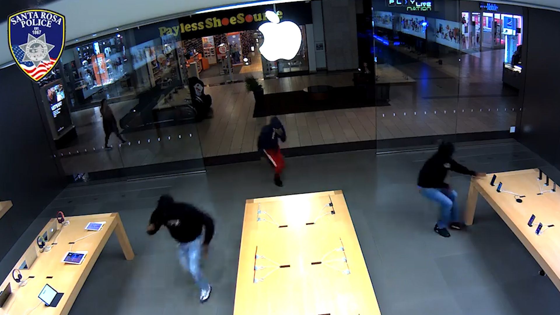 Một trong những vụ trộm cửa hàng Apple xảy ra vào năm ngoái được ghi lại bởi camera an ninh.