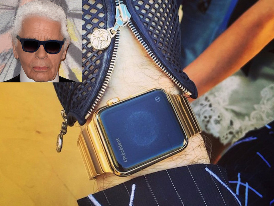 Trở lại thời điểm năm 2015, trước khi Apple trình làng thế hệ Apple Watch đầu tiên, biểu tượng làng thời trang Karl Lagerfeld đã được người đứng đầu mảng thiết kế Apple Jony Ive tặng một chiếc đồng hồ thông minh Apple Watch. Đây là phiên bản Apple Watch vàng 18K cùng dây đeo bằng vàng hiếm có mà theo trợ lý của Karl Lagerfeld là được “làm một cách đặc biệt” bởi Apple cho ông với giá trị có thể lên tới trên dưới 25.000 USD.