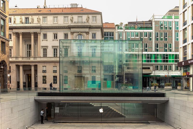 Apple Store ở Milan, Ý đóng cửa. (Ảnh: Bloomberg)