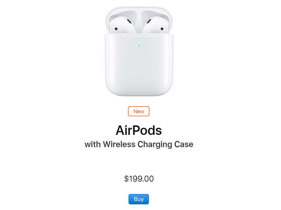 AirPods mới với case sạc không dây có giá 200 USD, đắt hơn 40 USD so với AirPods đời đầu.