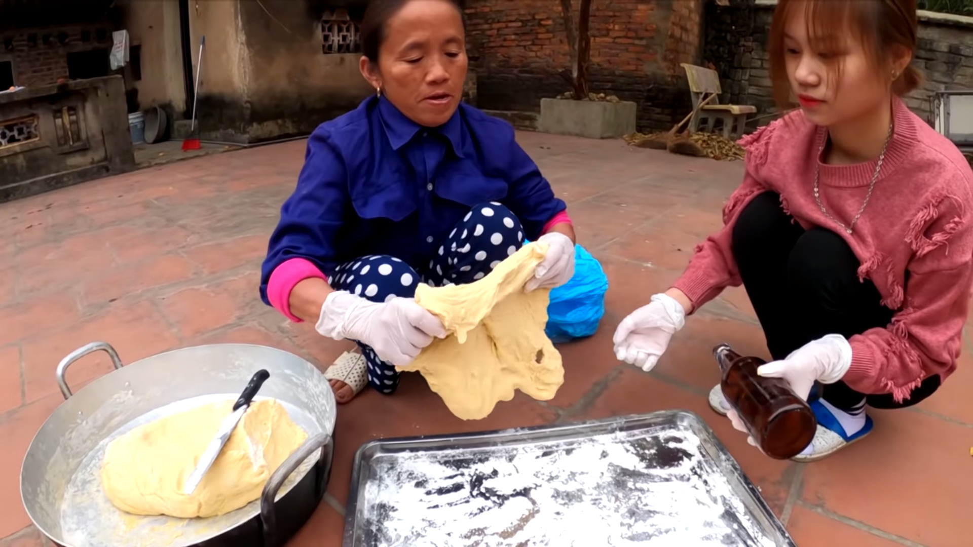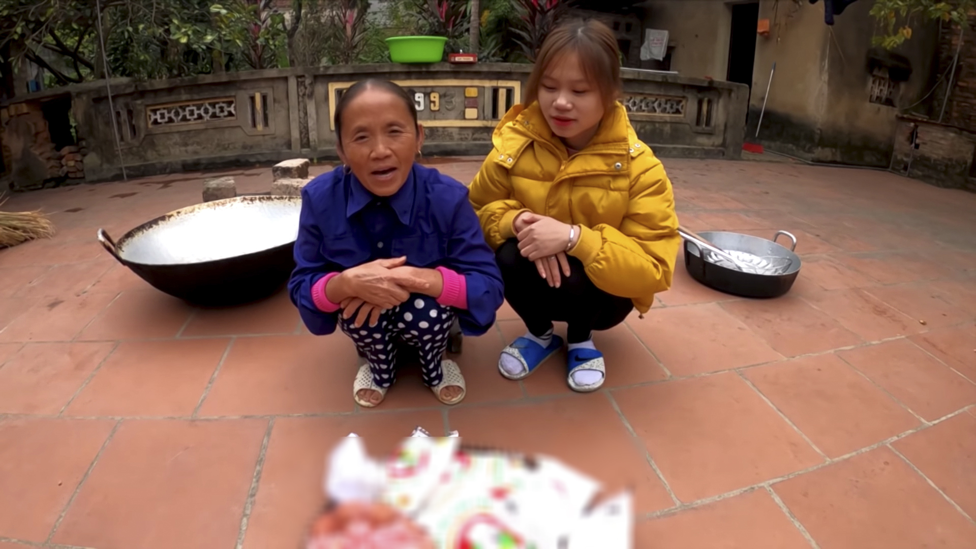 Cũng như những vlog “siêu to khổng lồ” trước đó, bà Tân cũng gửi lời chào đến tất cả các cháu đang xem video mới của bà. Tuy nhiên, vì phải làm mâm quẩy với số lượng nhiều nên bà Tân đã phải nhờ đến sự trợ giúp của một người cháu gái.