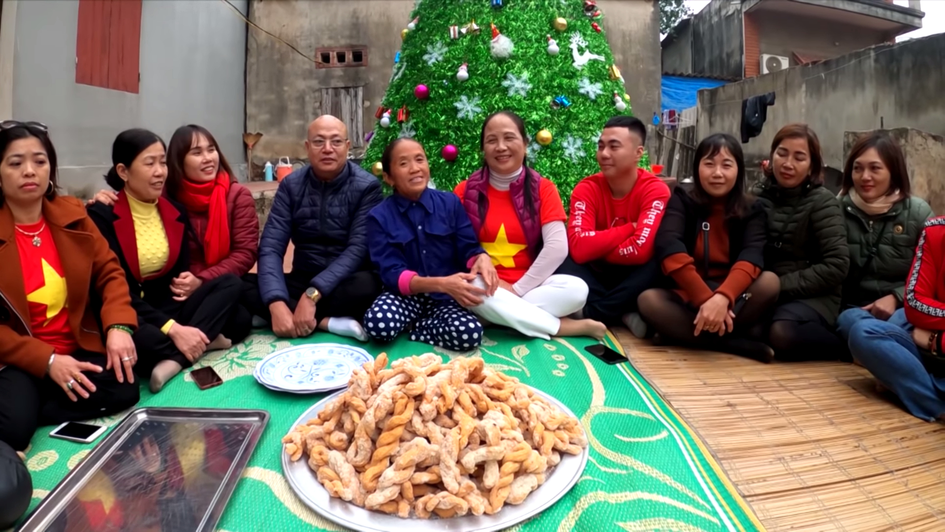 Sau khi đã thực hiện xong mâm bánh quẩy “siêu to khổng lồ”, bà Tân đã cùng những khách mời của mình vừa ăn vừa ca hát. Không khí vui vẻ càng thêm tràn đầy trong vlog mới của bà Tân khi mọi người cùng quây quần bên cây thông Noel.