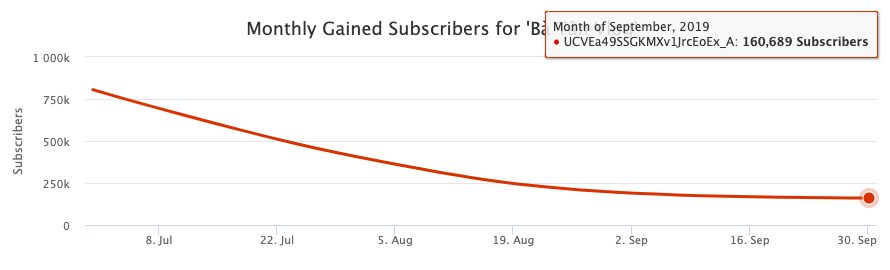Tháng 9 năm nay, kênh Bà Tân Vlog chỉ có thêm khoảng 160 nghìn người nhấn theo dõi. Trước đó, vào thời điểm tháng 6, con số này lên tới trên 800 nghìn người nhấn theo dõi. Ở thời điểm hiện tại, Bà Tân Vlog đang có khoảng 3,27 triệu lượt người nhấn theo dõi. Cùng ekip của mình, bà đã đăng tải 107 video và mang về hơn 363 triệu lượt xem.