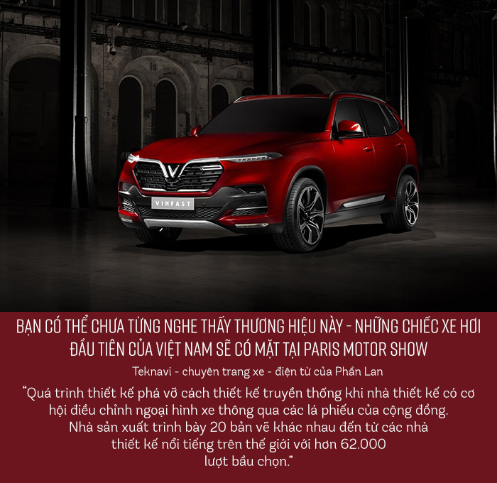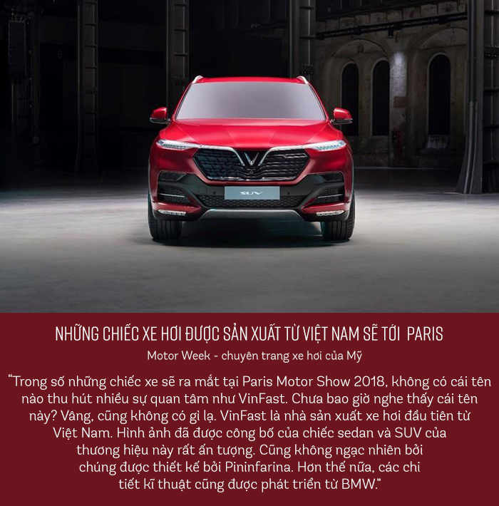 Tháng 10 tới, VinFast sẽ mang hai mẫu xe đầu tiên của mình, bao gồm một chiếc sedan và một chiếc SUV, tới ra mắt tại Paris Motor Show. Đây là lần đầu tiên có một thương hiệu xe hơi Việt Nam tham dự sự kiện này, vì thế, không khó hiểu khi chúng lại thu hút được nhiều sự chú ý đến vậy.