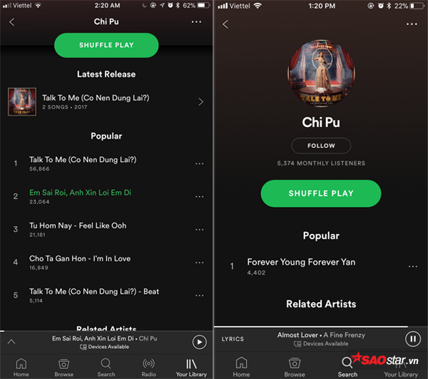 Tại Việt Nam, thực hiện tìm nhạc Chi Pu lại không ra đầy đủ như tại nước ngoài.