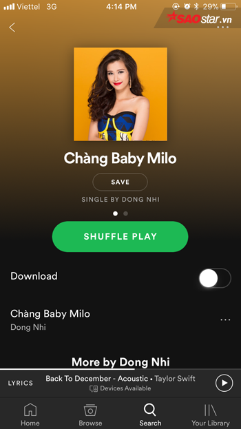 Ở một trường hợp khác, ca khúc “Chàng Baby Milo” của Đông Nhi lại có một đoạn âm thanh thu âm có nội dung liên quan đến website sonhai.info khiến nhiều người nghe nhạc bất ngờ. Trong trường hợp bạn chưa biết, đây là website chia sẻ, nghe nhạc có tiếng một thời. Ở đây, có lẽ khâu kiểm duyệt nội dung của Spotify đã có vấn đề.