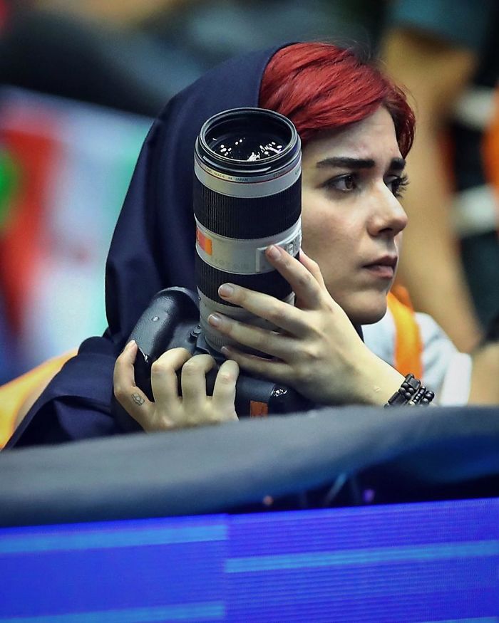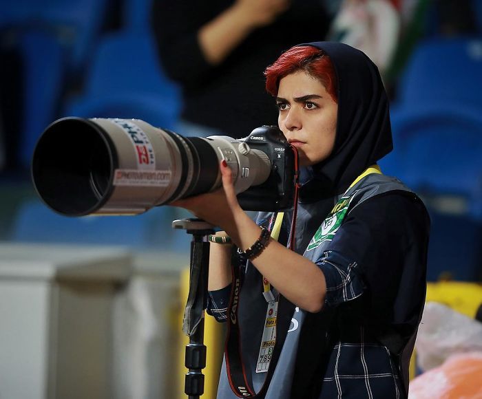 Đây là Parisa Pourtaherian, một phóng viên thể thao người Iran.