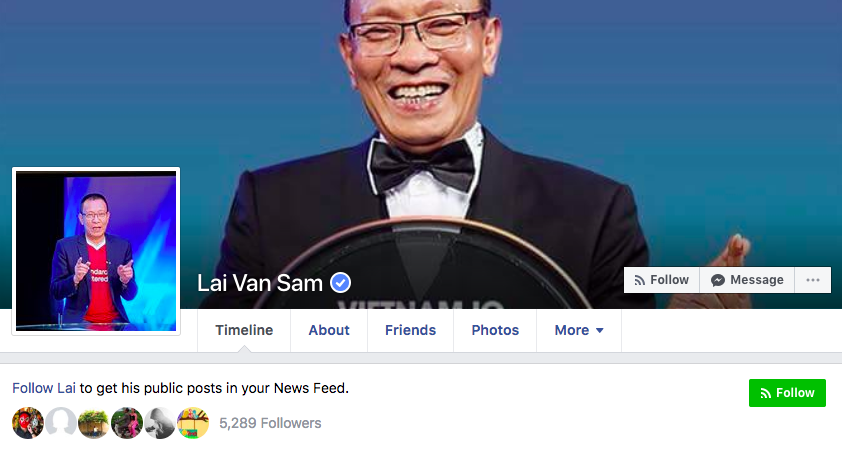 Mới đây, trên Facebook bất ngờ xuất hiện một tài khoản Facebook có tên “Lai Van Sam” cùng dấu tick xanh thể hiện việc tài khoản này đã được Facebook xác thực. Dù vậy, sau quá nhiều năm bị “mạo danh” trên mạng xã hội lớn nhất hành tinh, vẫn có không ít người dùng “bán tín bán nghi” về tài khoản này. Dù vậy, theo xác minh của một số nguồn tin, tài khoản Facebook có tên “Lai Van Sam” cùng dấu tính xanh chính xác là tài khoản chính chủ của nhà báo Lại Văn Sâm.