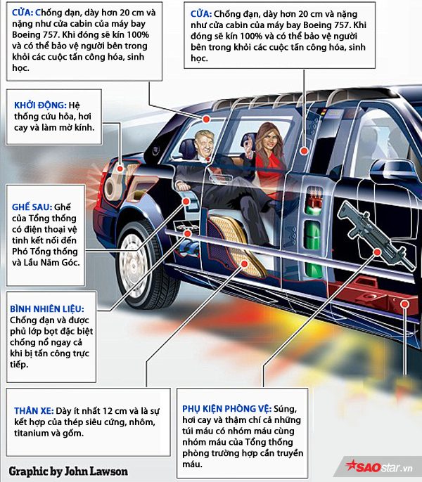 Trong những chuyến công du quốc tế của ông Donald Trump, chiếc xe “Quái thú” của Tổng thống Mỹ luôn thu hút được rất nhiều sự chú ý. Dưới đây là những điểm đặc biệt nhất liên quan đến chiếc xe này.