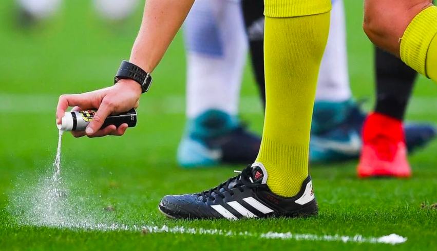 Với những người hâm mộ bóng đá, trong vài năm trở lại đây, hình ảnh trọng tài chính của trận đấy cầm những bình xịt bọt ở các tình huống đá phạt trực tiếp không còn là điều xa lạ. Theo đó, những bình xịt này là những bình xịt bọt tự tan. Chúng thường được sử dụng bởi cách trọng tài để đánh dấu vị trí tối nhiều các cầu thủ phòng ngự có thể được đứng trong những quả phạt trực tiếp của đội đối phương (không gần hơn 9,1 mét) hoặc để đánh dấu vị trí đặt bóng cho đội được hưởng quả phạt.