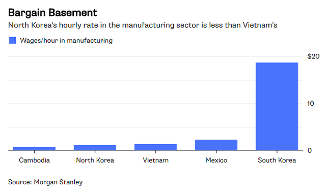 Bất chấp điều đó, Bloomberg nhận định Samsung khá sẵn sàng tái cơ cấu địa điểm sản xuất của mình. Số liệu từ Kaesong Industrial Complex của Triều Tiên cho thấy chi phí nhân công tại đây rẻ hơn so với Việt Nam.