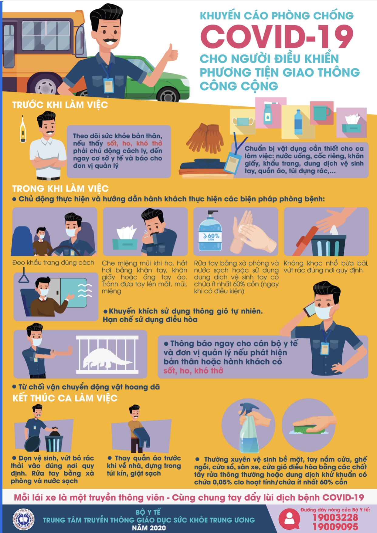 Trước đó, Bộ Y tế cũng đã đưa ra khuyến cáo phòng chống COVID-19 cho người điều khiển phương tiện giao thông công cộng tại Việt Nam. (Ảnh: Bộ Y tế)