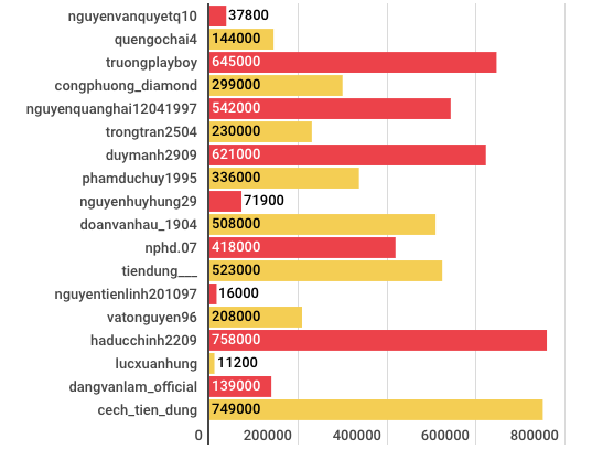Số lượng người theo dõi các cầu thủ đội tuyển Việt Nam trên Instagram.