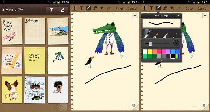 Ứng dụng S Memo trên Samsung Galaxy Note đời đầu.