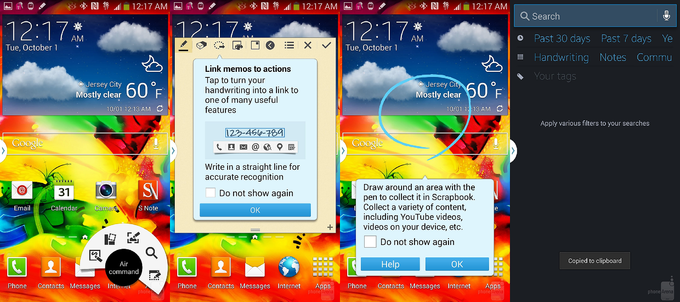 Air Command, Scrapbook, S Finder và Action Memo trên Samsung Galaxy Note 3.