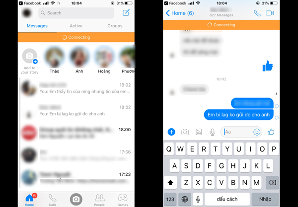 Trên ứng dụng Messenger, việc load tin nhắn mới và gửi tin nhắn đi cũng có vấn đề. Dù vậy, trên máy của một số người vẫn có thể cập nhật tin đến, nhưng không thể gửi tin đi; người khác thì lại bị cả 2. Nhìn chung, đây vẫn đang là lỗi gây ra những nỗi khó chịu và bực mình cho toàn thể người dùng.