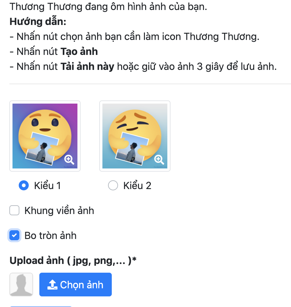 Bước 4: Ảnh tạo thành công ở dưới, lúc này bạn hãy bấm “Tải ảnh” để lưu lại biểu tượng cảm xúc vừa chế được là xong!