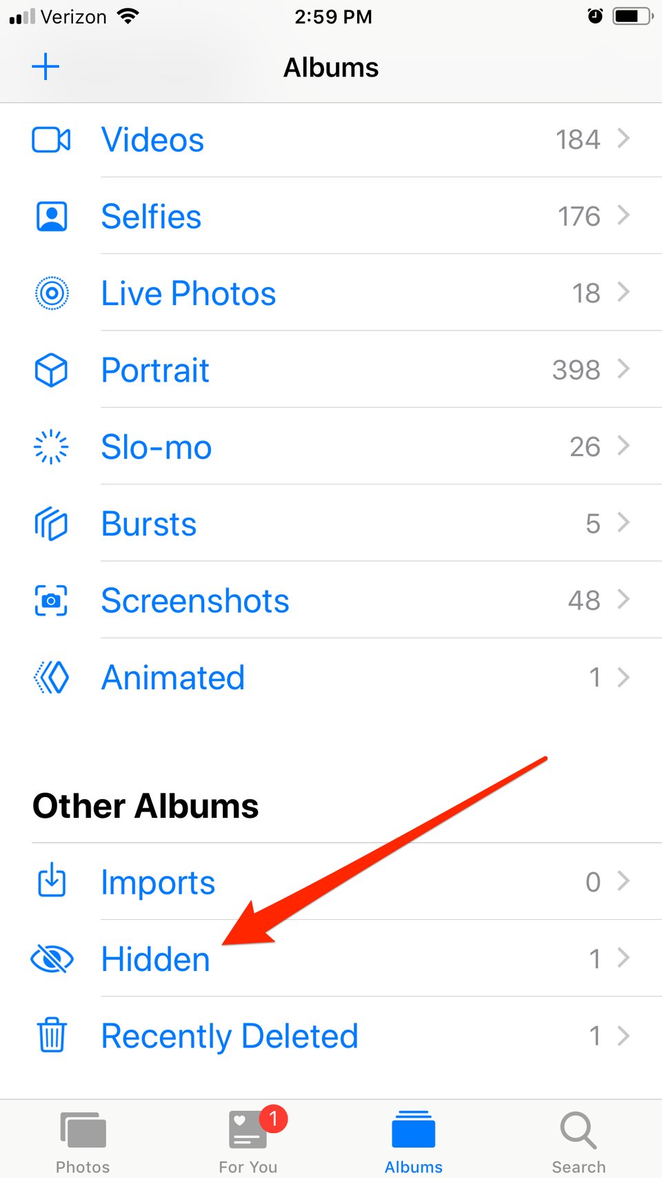 Những hình ảnh mà bạn giấu sẽ được xoá ra khởi album chính trong điện thoại và được đưa vào một album mới với tên gọi “Hidden.” Để truy xuất nó, từ màn hình chính của ứng dụng Photos, bạn có thể cuộn xướng mục “Other Albums” và chọn “Hiddens.”