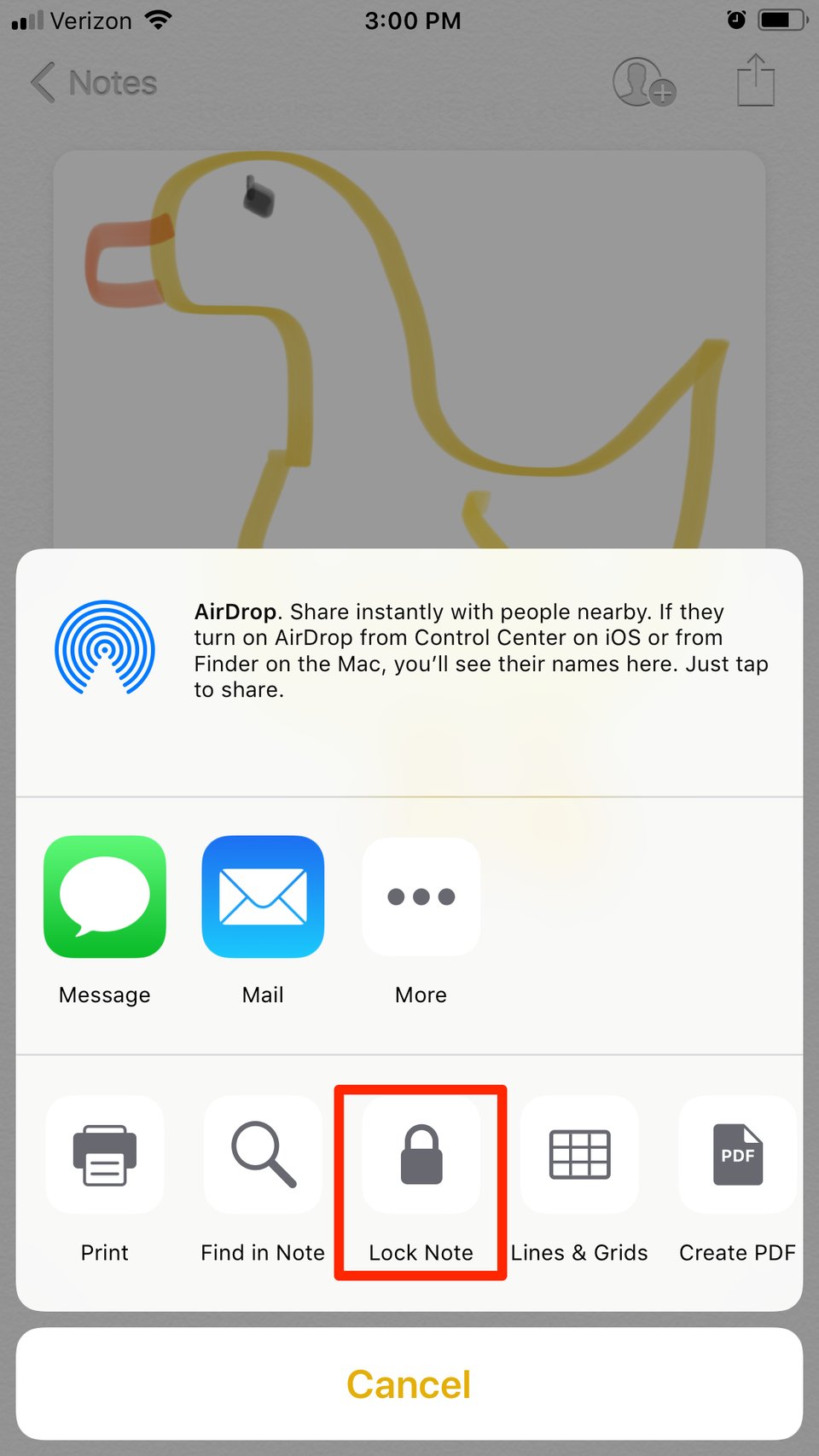 5. Ở thanh công cụ cuối trang, chọn “Lock Note”.