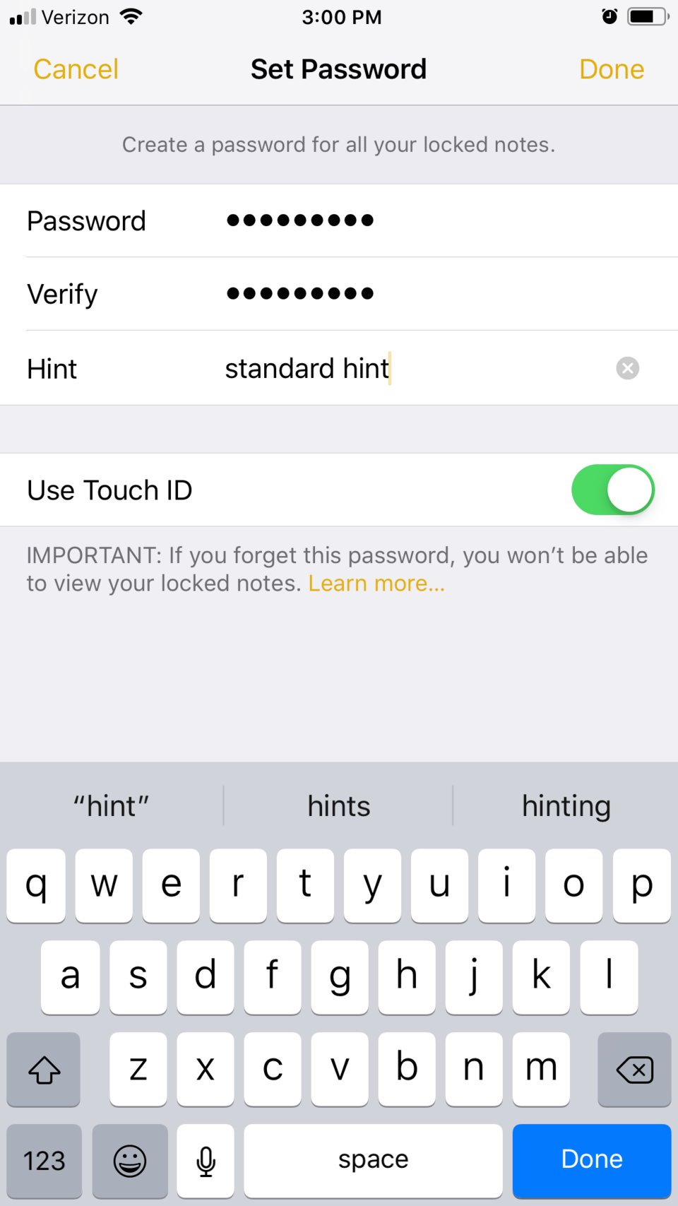 6. Nếu đây là ghi chú đầu tiên bạn khó, hãy tạo mật khẩu và chọn “Done.”